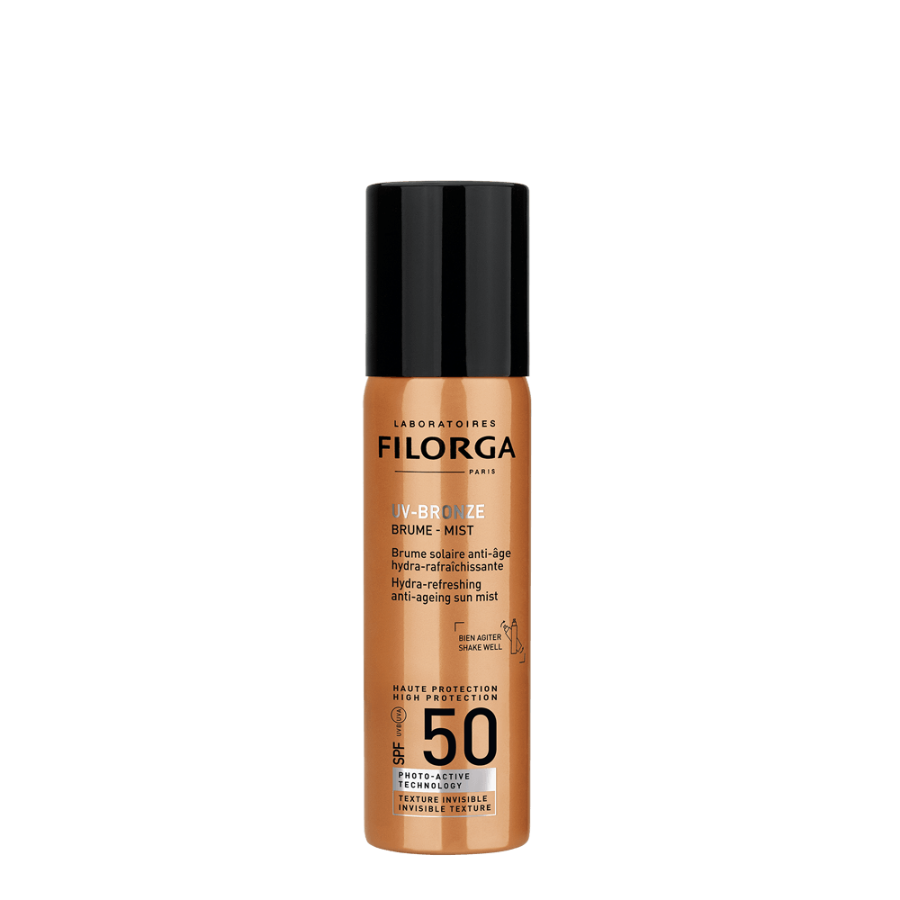 UV-Bronze Brume SPF50 de Filorga, est une brume solaire anti-âge hydra-rafraîchissante.
